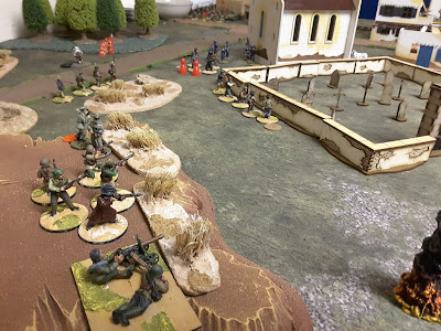 A newly arrived International Brigade Battalion pushed forward to support the remnants of the Assaltos in the Cemetery and Church, supported by a HMG.